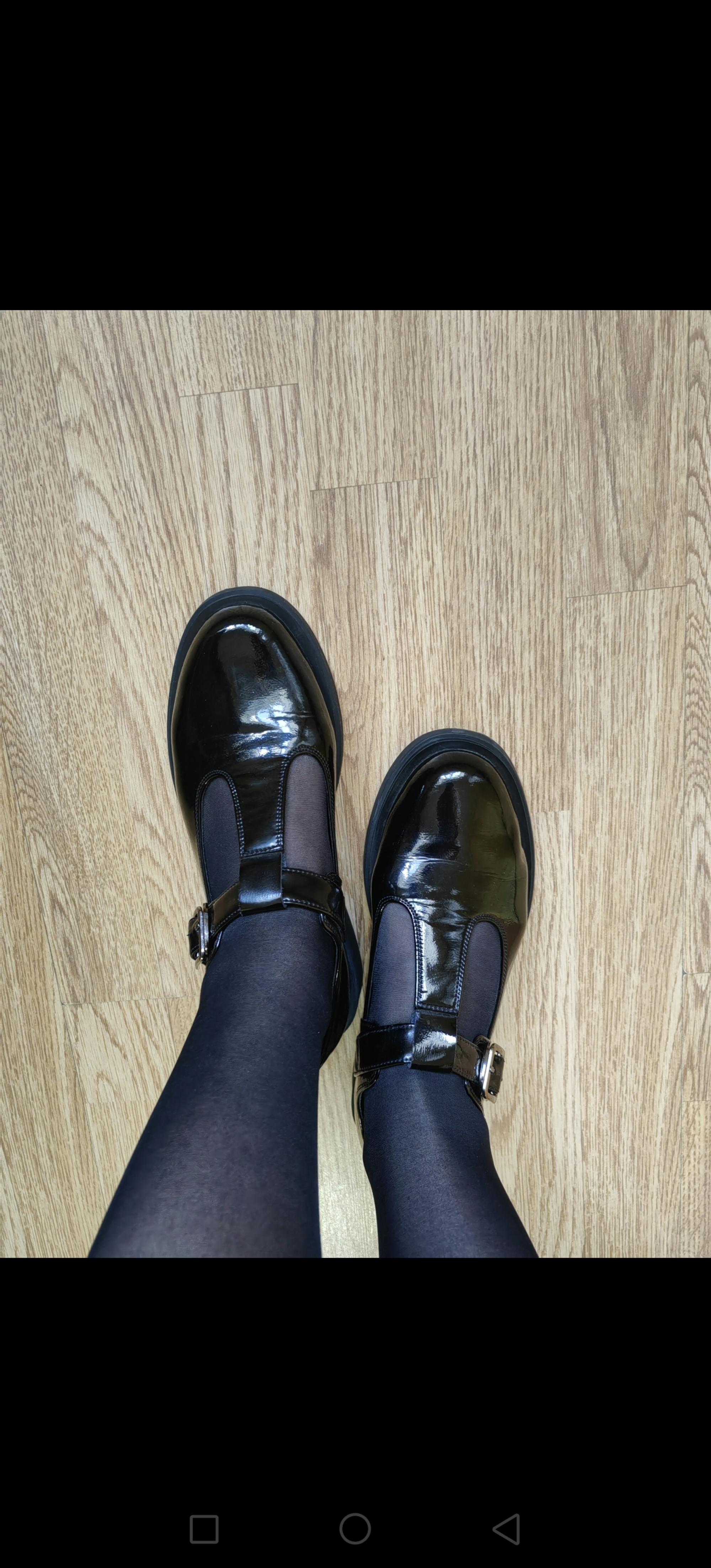 - Верх обуви выполнен из лакированной кожи, придавая ей элегантный и блестящий внешний вид.