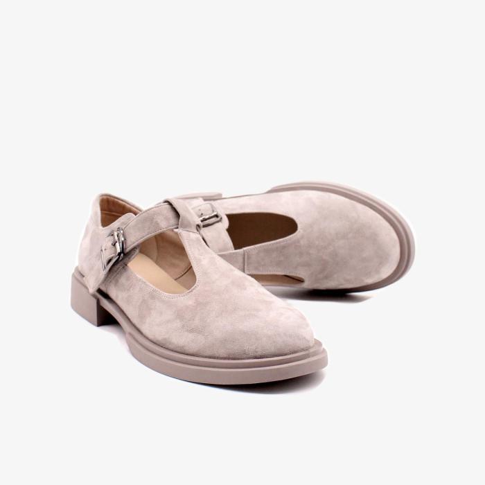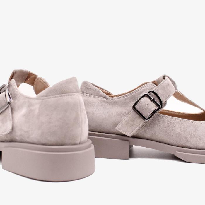 Туфли 9085 выполенены из натуральной замши серого цвета. Эти туфли в стиле Мэри Джейн с широким массивным каблуком и закругленным носком обеспечивают комфорт и стиль. Застежка-ремешок с пряжкой на подъеме обеспечивает надежную посадку и удобство ношения.