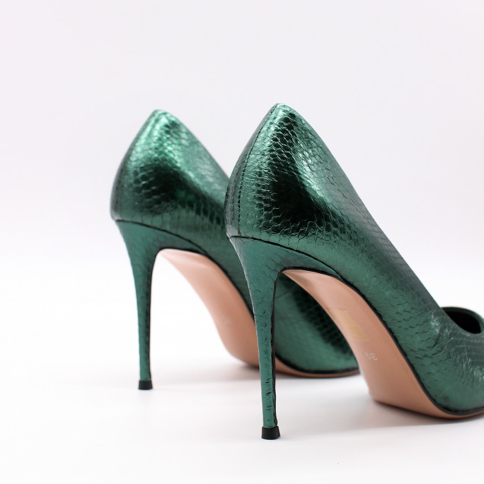 Туфли на шпильке BAROCCO 313-01 (зелёный) прекрасно сочетаются с вечерними платьями, коктейльными нарядами и даже брючными костюмами, добавляя шарма и изысканности вашему образу.