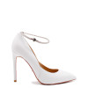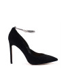 Это туфли на устойчивом каблуке-шпильке, с заостренным мысом и декоративным браслетом со стразами, что придает им особую элегантность.