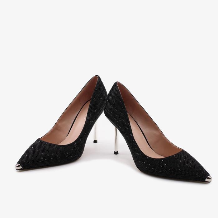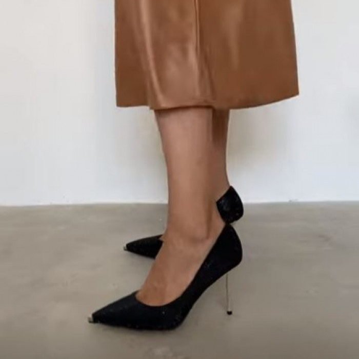 Они отличаются своим выразительным дизайном и добавляют элегантности любому образу благодаря оформлению стразами, металлическому каблуку-шпильке и металлической накладке на носке.