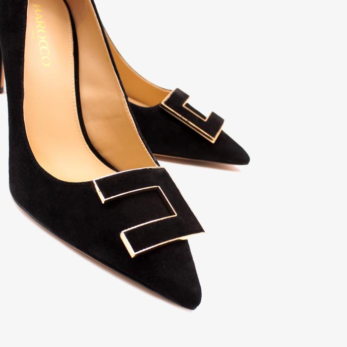 Туфли 9126, выполненные из натуральной замши в черном цвете, - идеальный выбор для стильных женщин, ценящих комфорт и изысканный вид. Ключевая особенность: туфли обладают устойчивым каблуком (каблук обтянут натуральной замшей), острым мысом, каблуком-шпилькой, стильным дизайном в виде туфель лодочек и декоративным элементом в носочной части. Эти особенности придают обуви изысканный вид и обеспечивают комфорт при ходьбе.