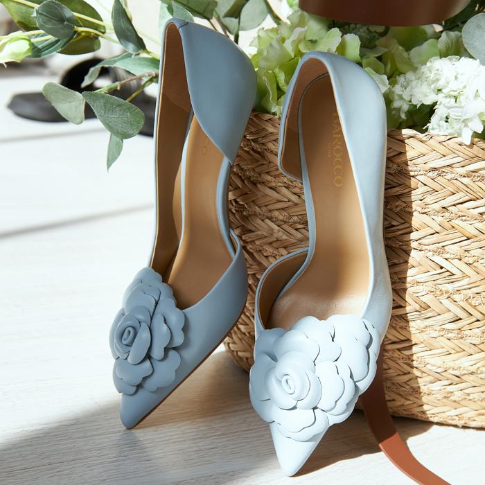 Туфли 9219, выполненные из натуральной кожи очаровательного голубого оттенка, излучают элегантность и стиль. Ключевой особенностью этих туфель является устойчивый каблук, обтянутый натуральной кожей, заостренный мыс, а так же декоративный элемент в виде цветка в носочной части, придают нотки гламура повседневному ношению и станут универсальным дополнением к любому гардеробу.