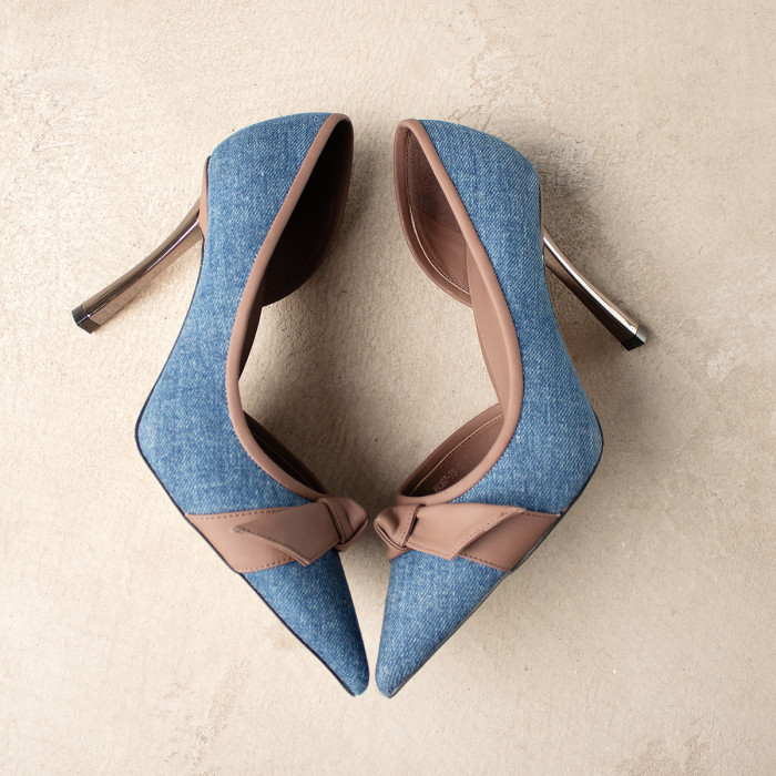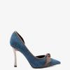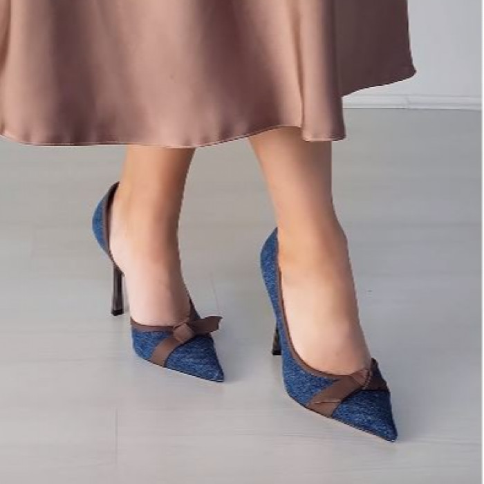 Туфли 9221 выполнены из высококачественного текстиля синего оттенка в сочетании с натуральной кожей коричневого цвета. Эти туфли имеют устойчивый каблук, заостренный носок, металлическую шпильку и шикарный декоративный элемент в носке, что обеспечивает элегантность и комфорт.
