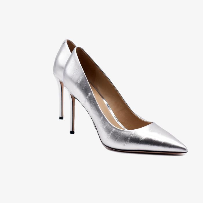 Туфли 9546, выполненные из натуральной кожи серебряного цвета, - идеальный выбор для стильных образов. Эти туфли отличаются устойчивым каблуком-шпилькой, острым мысом и классическим дизайном туфель-лодочек. Их стильный вид добавит женственности и роскоши Вашему образу.