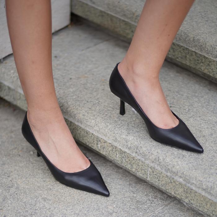 Туфли 9638 черного цвета выполнены из натуральной кожи, что делает их стильным и универсальным аксессуаром для Вашего гардероба. Классические туфли-лодочки с острым мысом и устойчивым каблуком шпилькой (каблук обтянут натуральной кожей) обеспечивают элегантный и утонченный вид.